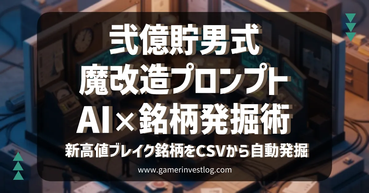 この記事では、最新プロンプトの解説と、僕が「新高値ブレイク × 成長株」用にカスタムしたバージョンの両方を公開します。実際にSBI証券のスクリーニング結果(CSV)を読み込ませて検証した結果も共有しますので、ぜひ参考にしてください。