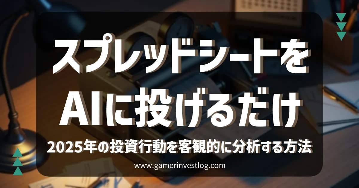 そこで今回は、スプレッドシートのデータをAIに投げて、2025年の投資行動を客観的に分析してもらう方法を紹介します。CSVをエクスポートしてアップロードするだけ。面倒なデータ加工は不要です。